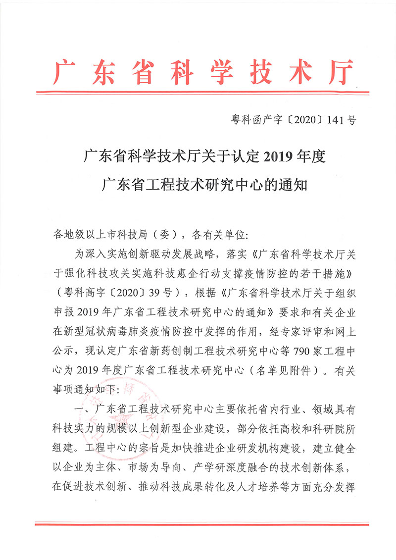 九球直播机械制造有限公司于2019年认定为广东省工程技术研究中心